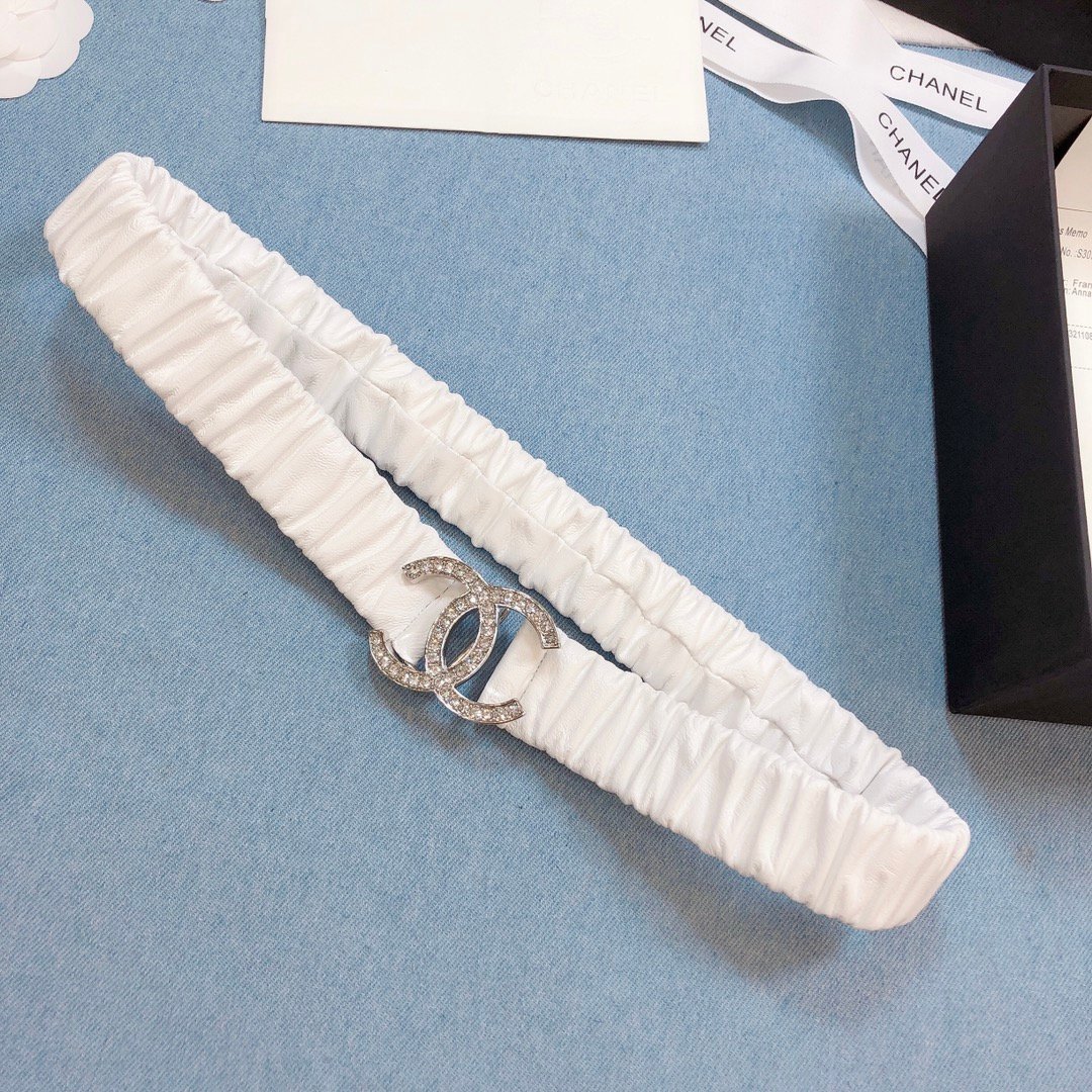 Chanel Belt Double C Buckle White Silver-Toned Hardware and Strass Women Belt 30MM