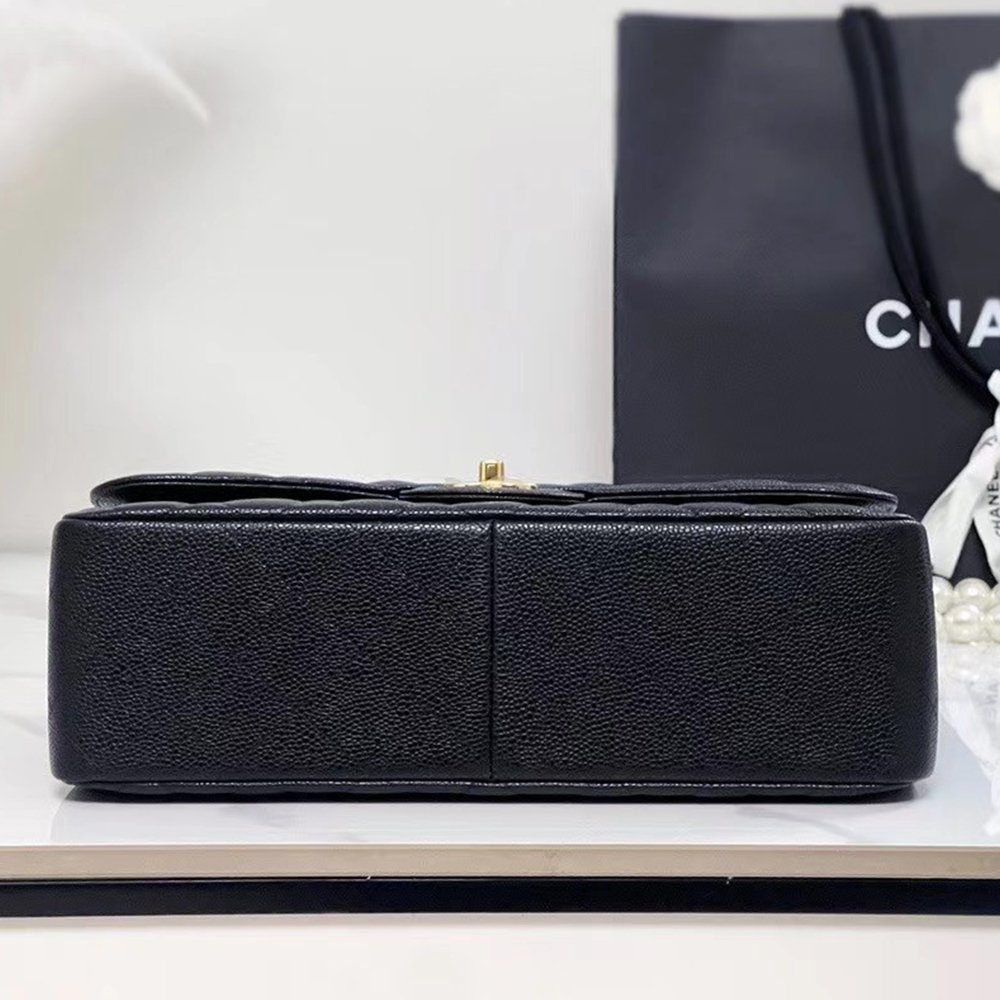CHANEL Caviar Quilted Jumbo Double Flap Black 30CM
