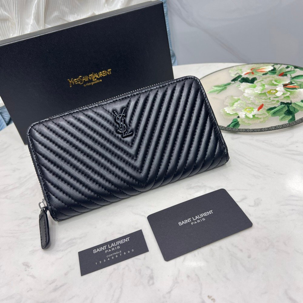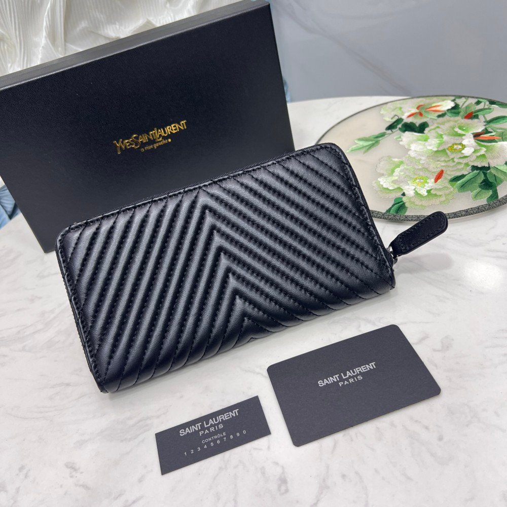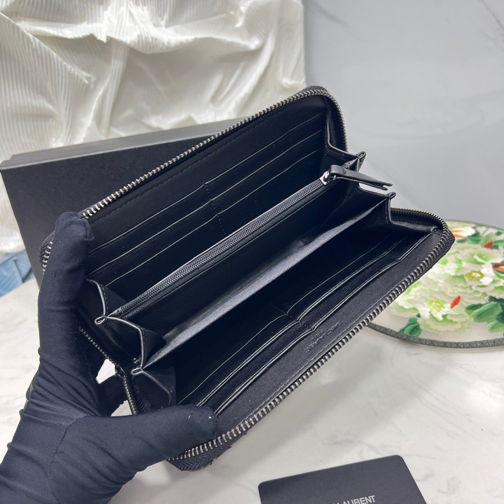 Saint Laurent YSL Caivar Zipper Long Wallet
