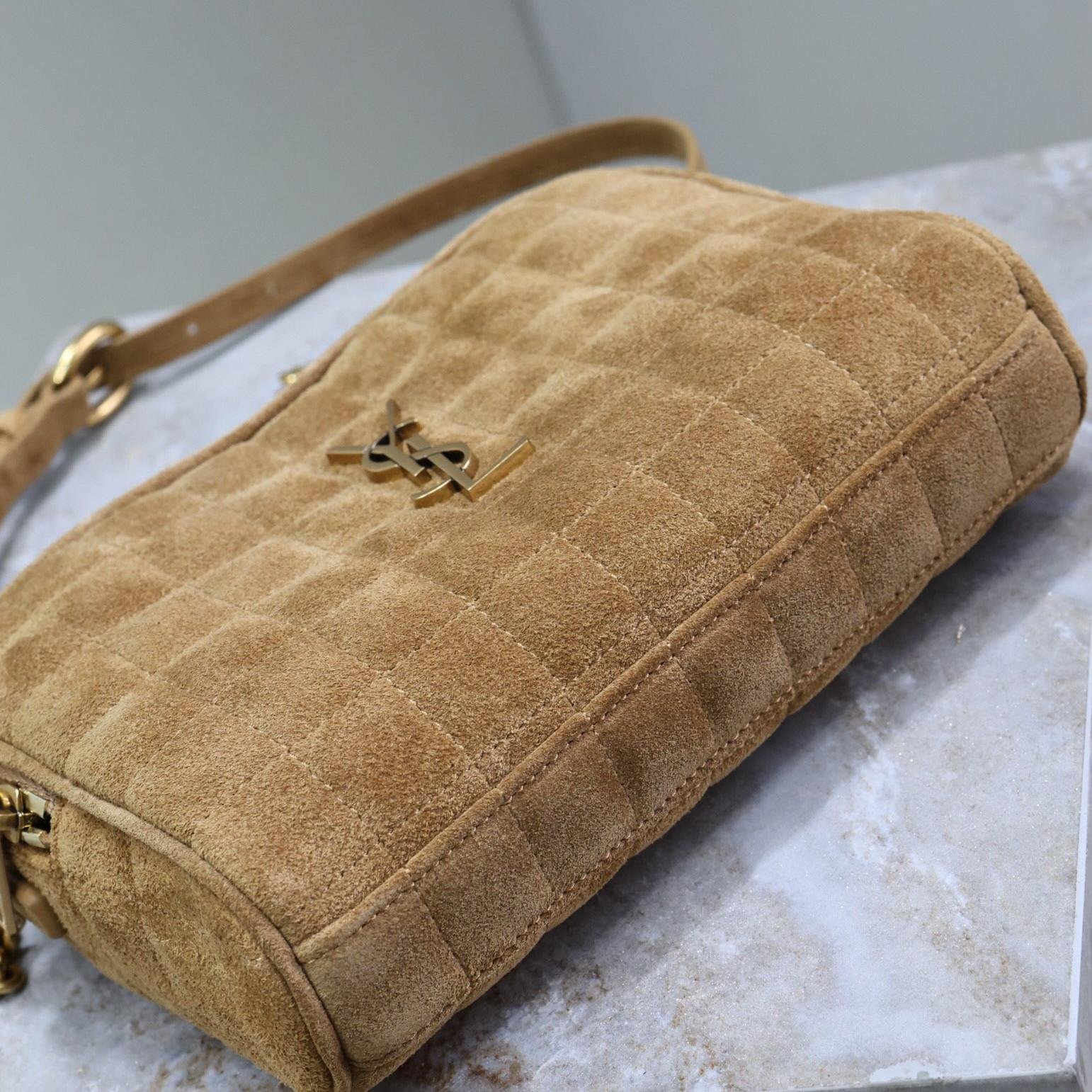 Saint Laurent YSl Suede Cassandre Matelassé Square MiniCamera Bag