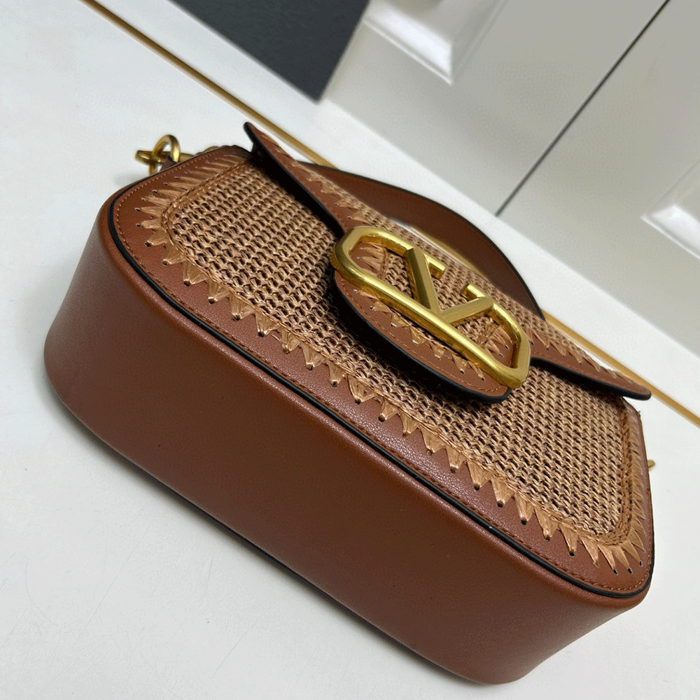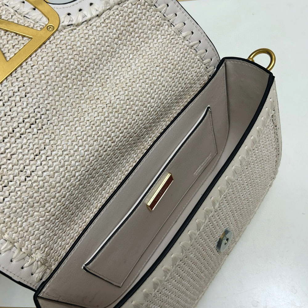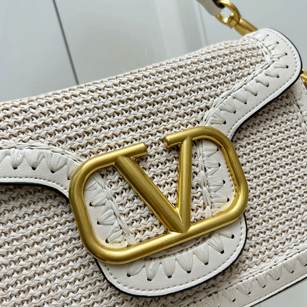 Valentino Garavani Alltime woven leather shoulder bag with metallic VLogo Signature element. The bag can be worn on the shoulder/cross-body or handheld thanks to the removable handle and removable fabric shoulder strap.